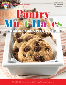 POWERED BY: www.C l ubsCho i ceFund r a i s i ng . com Gourmet Cookies & Popcorn SHELF -STABLE Cook i e Dough , Popco r n , Mi xes , and Mo r e SCHOOL PARTNERS See back to order, pay, and explore more online! Pantry Must-Haves Shelf-stable Cookies, Popcorn & MORE oo